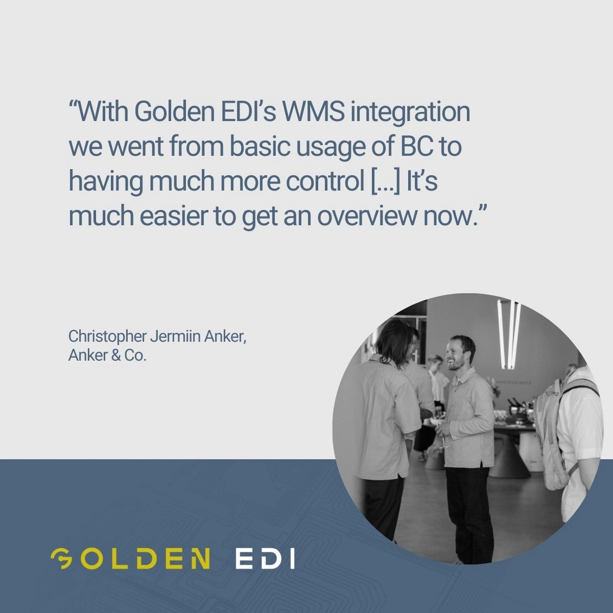 “With Golden EDI’s WMS integration we went from basic usage of BC to having much more control [...] It’s much easier to get an overview now.” –Christopher Jermiin Anker, Anker & Co.